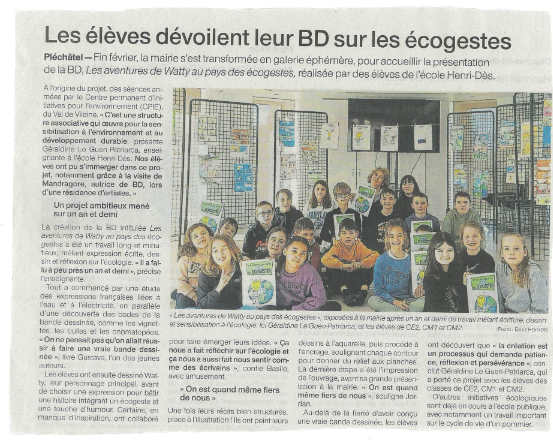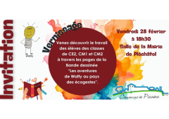 Venez découvrir le travail des élèves des classes de CE2, CM1 et CM2 à travers les pages de la bande dessinée « les aentures de Watty au pays des écogestes » le vendredi 28 février 2025 à 18h30 à la maire de Pléchâtel.